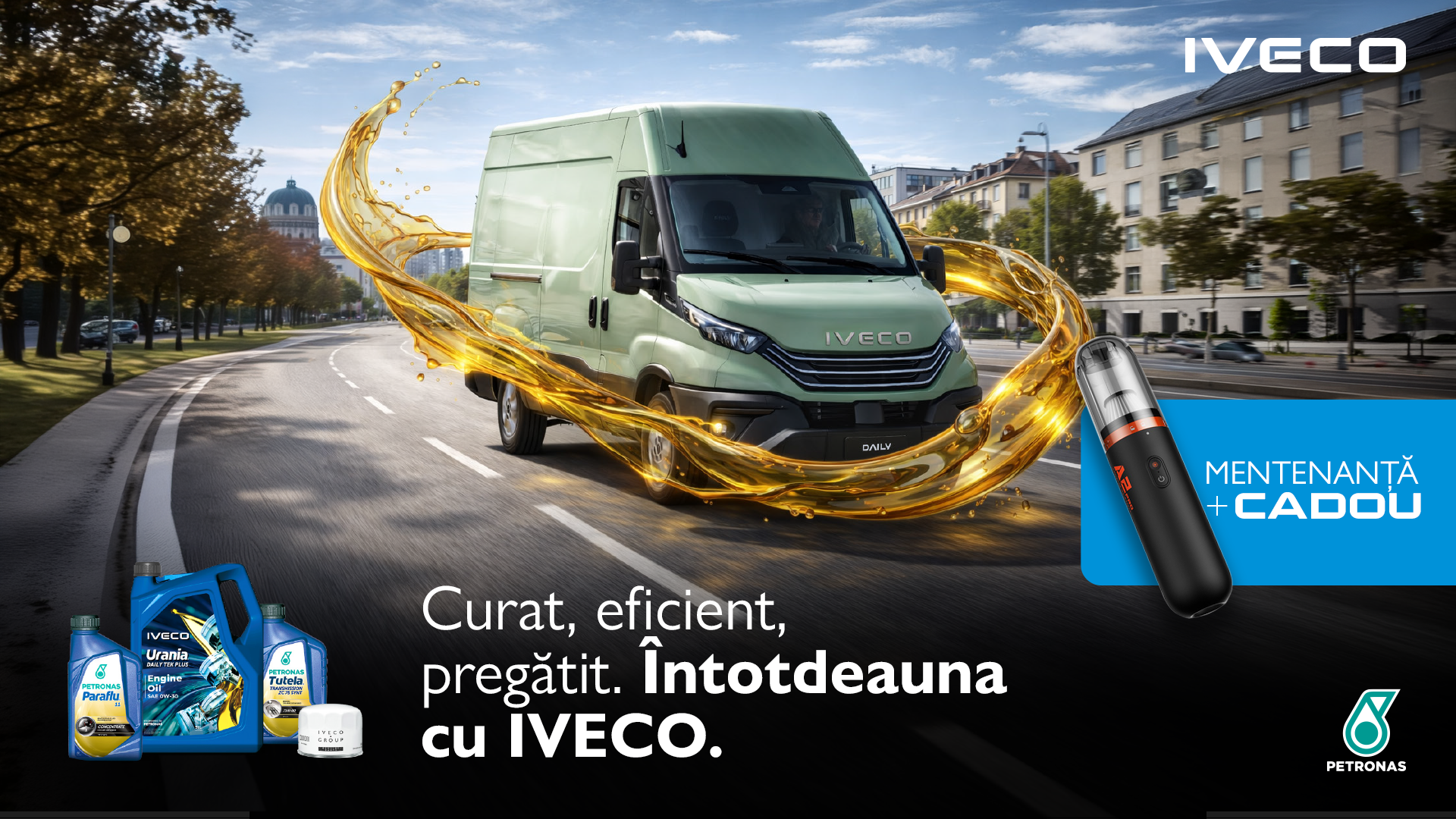 Efectuați mentenanța sau reparația vehiculului dumneavoastră sau pur și simplu achiziționați produse originale IVECO și PETRONAS din una dintre gamele oficiale IVECO (Genuine Parts, Reman Parts, NEXPRO by IVECO, IVECO Accessories) și PETRONAS (IVECO Urania, Tutela, Paraflu).